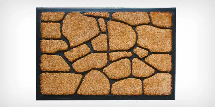 Denne dørmåtte har en rektangulær form, og måttens struktur ligner sten. Den er produceret af fibre fra kokosnødder samt gummi, og den kan rengøres ved forsigtigt at bankes, børstes eller støvsuges.
