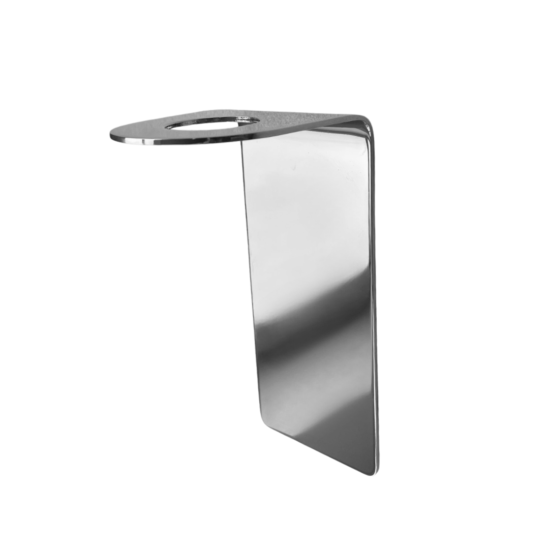 ELEMENTS vægholderen til pumpeflasker i krom er et elegant og praktisk tilbehør til dit hjem, den monteres med 3M uden brug af værktøj og kombinerer funktionalitet med stilrent design.
