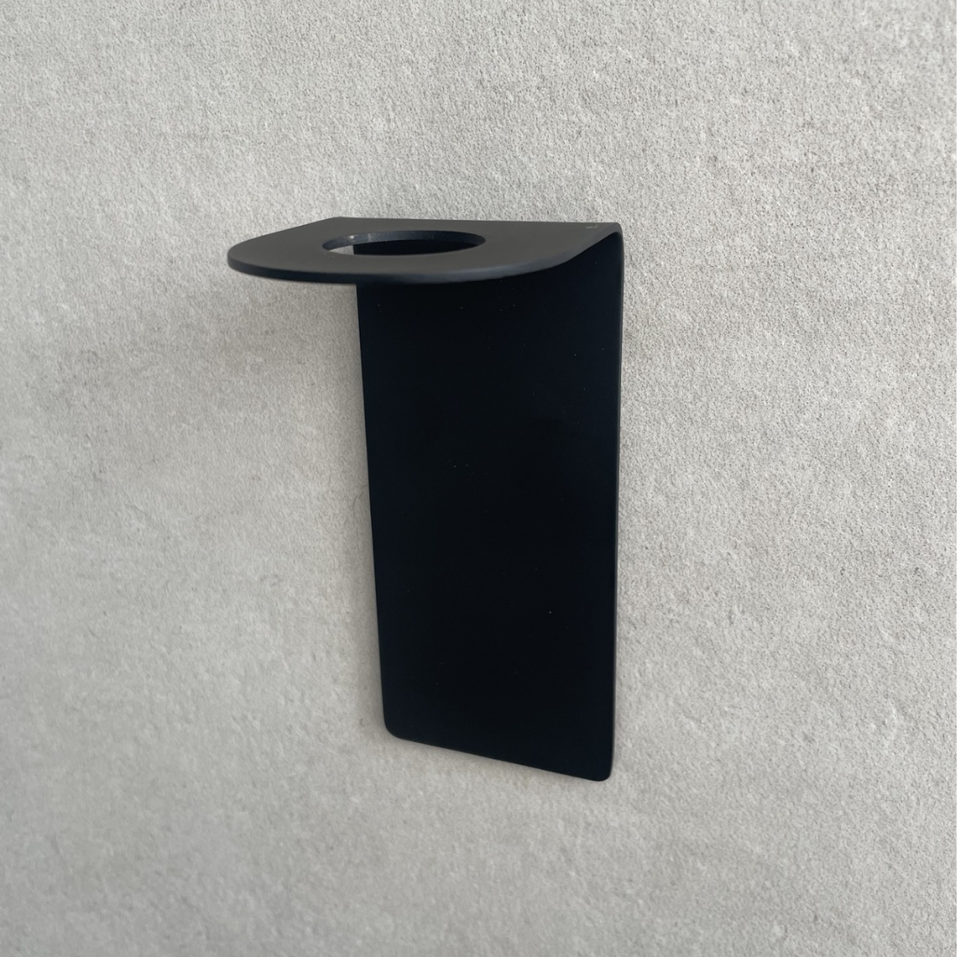 ELEMENTS vægholderen til pumpeflasker i sort er et elegant og praktisk tilbehør til dit hjem, den monteres med 3M uden brug af værktøj og kombinerer funktionalitet med stilrent design.