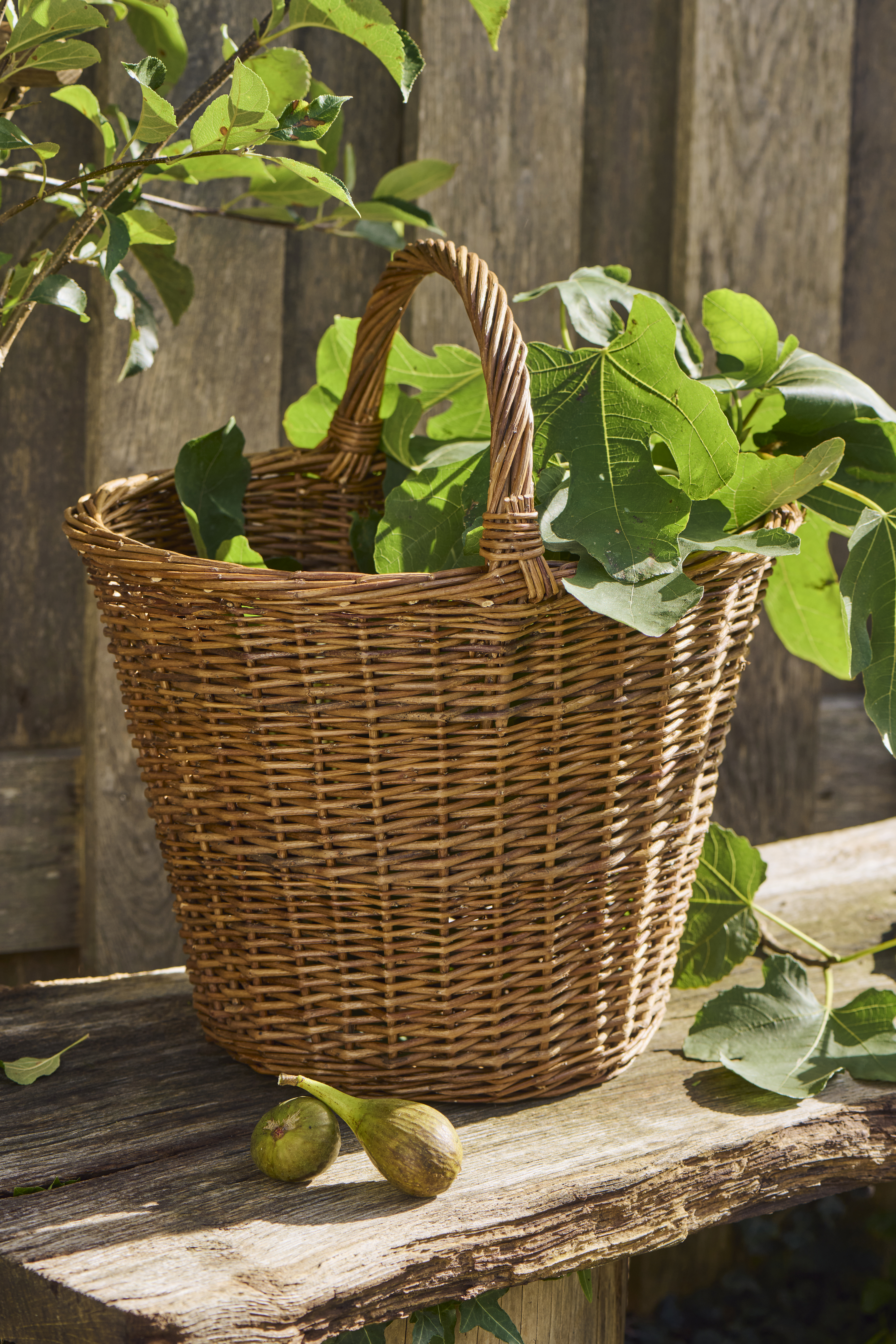 Den lave hank på tværs giver et stabilt og behageligt greb, og det varme farvespil gør kurven smuk og funktionel til både hjem og have.
