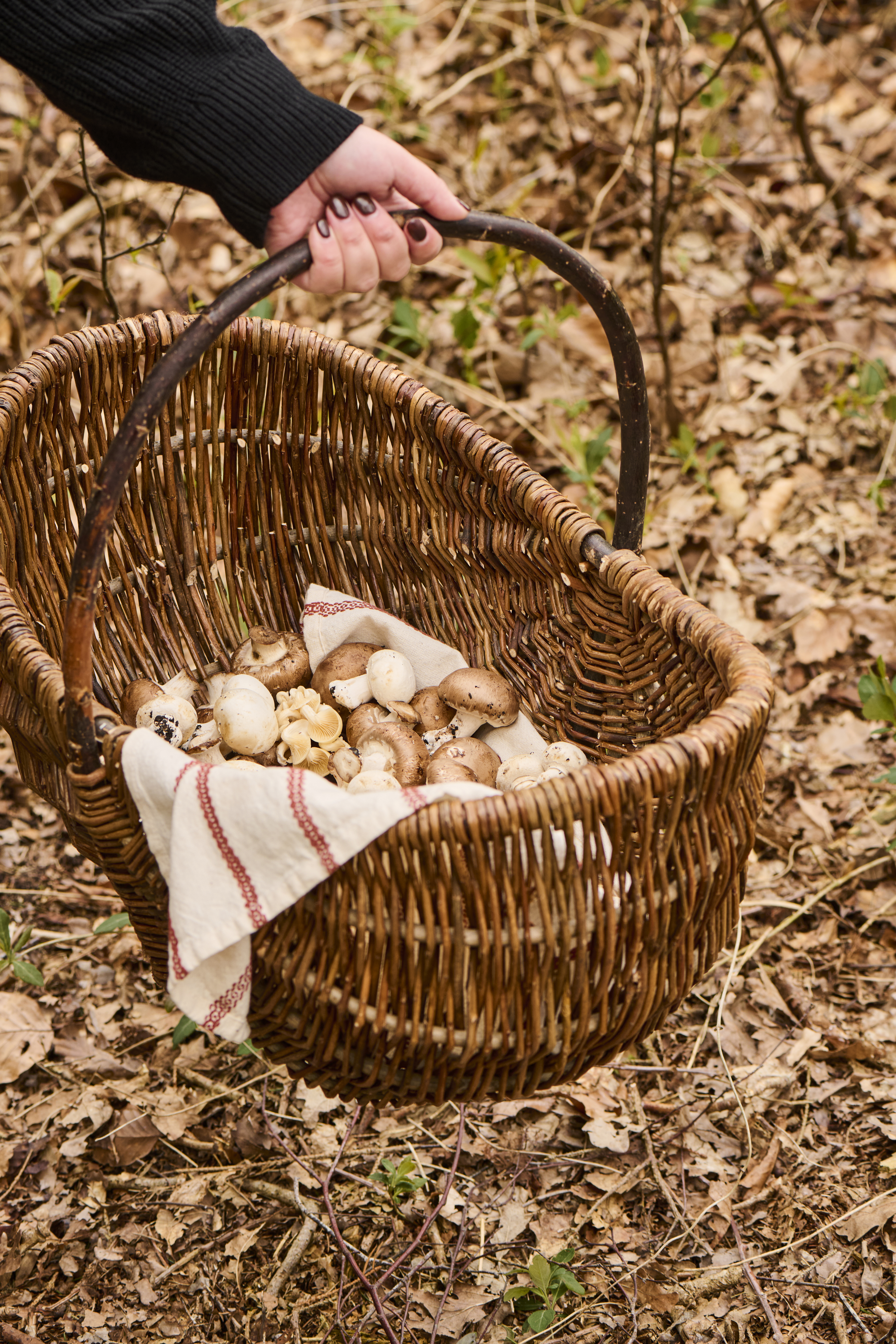 Håndlavet kurv i naturpil med tværgående hank. Skaber en varm, rustik stemning – ideel som høst-, picnic- eller gavekurv, eller til dekorativ opbevaring.
