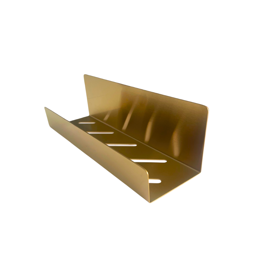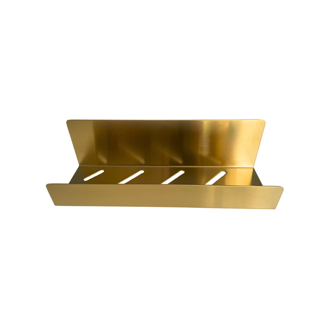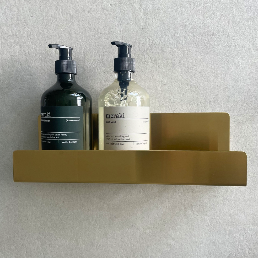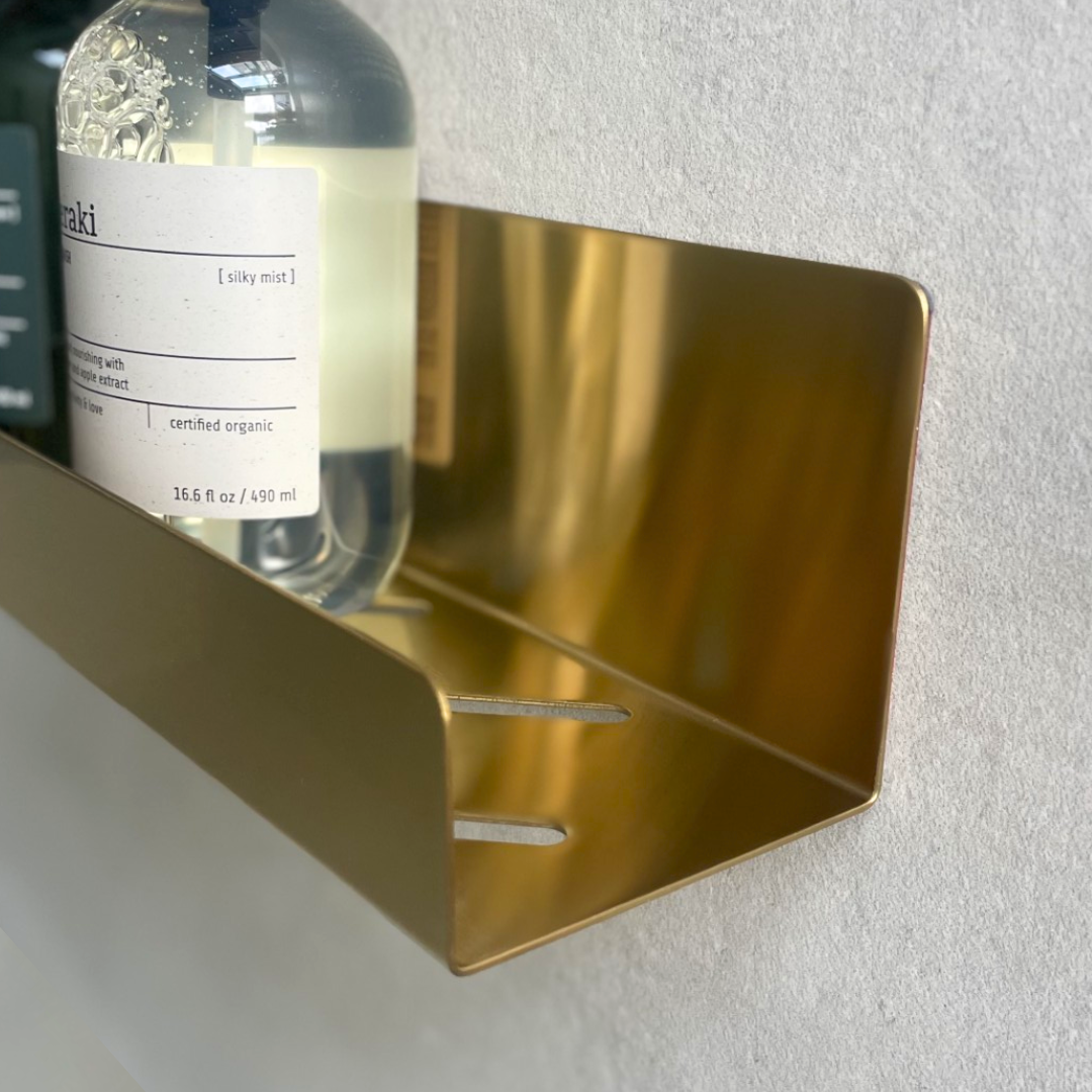 Selvklæbende shampoohylde, børstet messing finish